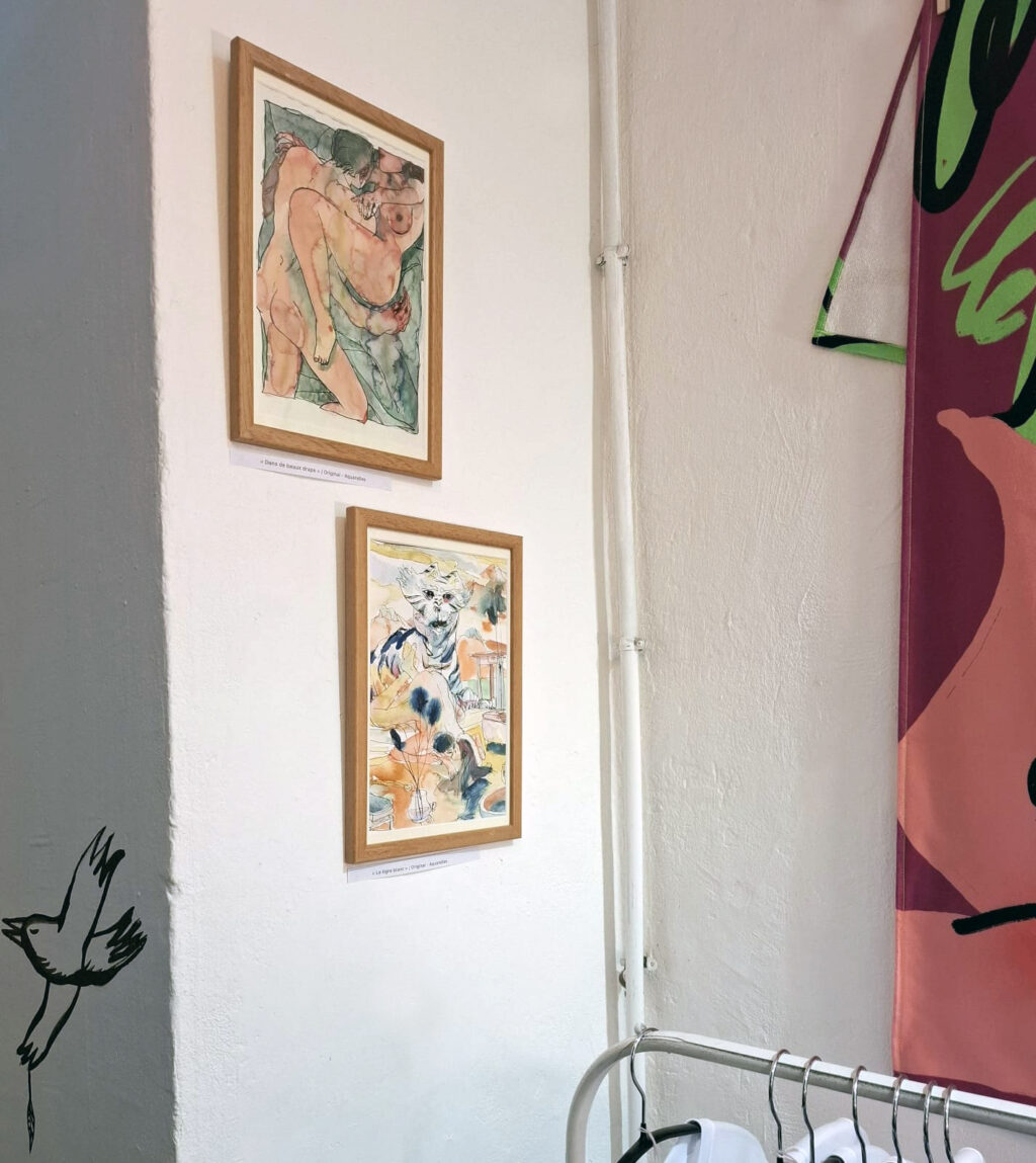 Cette fois (comme tous les ans à la même période) c’est l’illustrateur ANTONIN GUILLOT qui a répondu présent et vous a mijoté une exposition « Corps à corps », avec une série d’originaux réalisés à l’aquarelle (à la vente) Ainsi que des prints (n’est-ce pas la marque de fabrique d’Oh! Mirettes ?! ;))