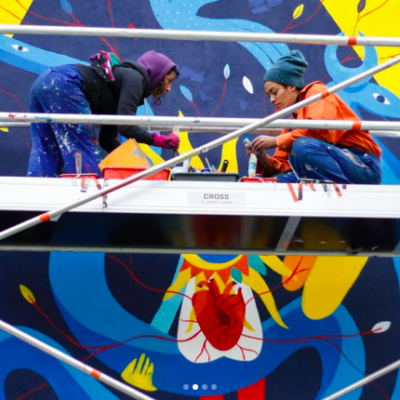 Fresque participative pour le groupe hospitalier Nord Essonne, la Maison des Femmes Olympe.