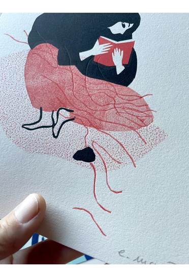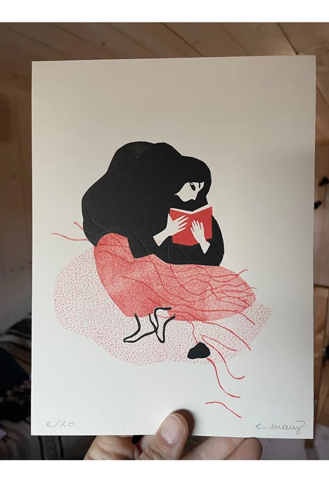 Les linogravures d'Evelyne invitent à la poésie, la douceur.