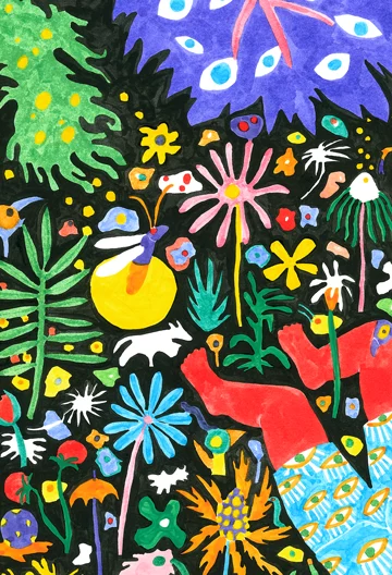 Coloré, les illustrations de Matthieu Ossona De Mendez reflète un monde qui marierait l'Homme et la nature.